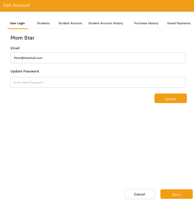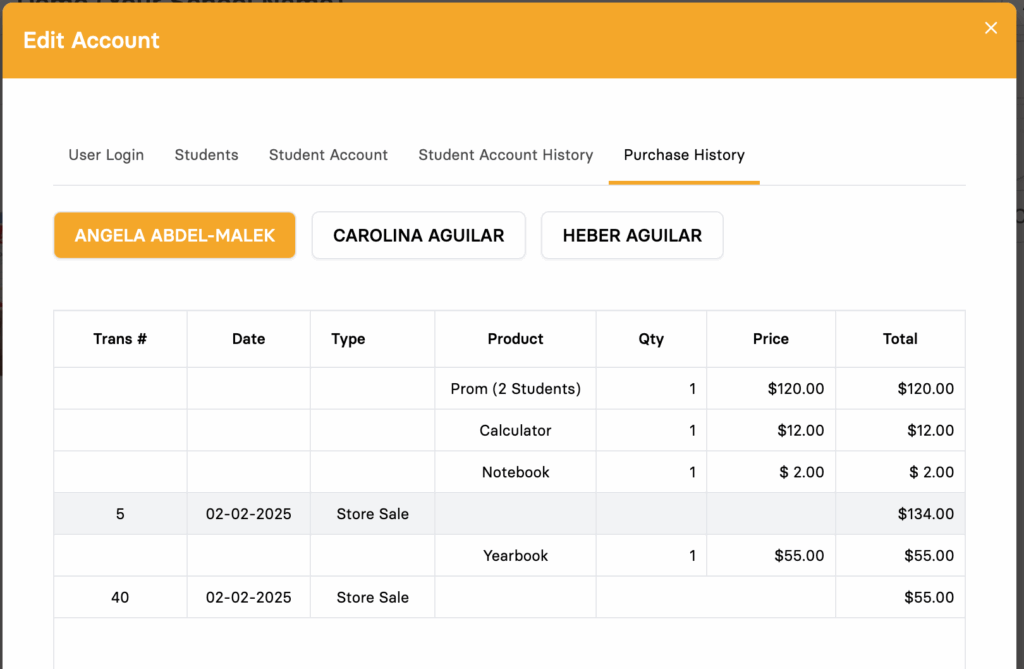 There are thee types of accounts. A student can create their own account, Family members create an account that allows them to connect to all of their students and guests can create an account that will not have access to purchase history or to add credit to a student account.